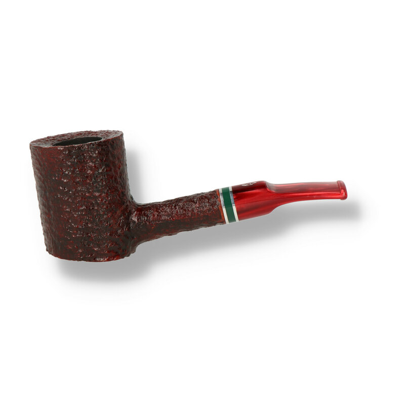 Savinelli St Nicholas Briar Pipes: The Savinelli St Nicholas combines an evocative festive styling with a classic dressy feel. Savinellis 2022 St Nicholas offering presents some of their most iconic shapes in an extra glossy, extra dark brown rusticated finishing. The beautifully glittery, pearlescent stem alternates light and dark red colouring reminiscent of a christmas bauble. This is then decorated with two silver rings that enclose a green acrylic band. This results in a beautiful Italian briar with a traditional aesthetic. 311 is a generously sized curved poker with a saddle stem, the unique feature of this shape is it's ability to stand on its own without any support, this results in a beautiful Italian briar with a traditional aesthetic.