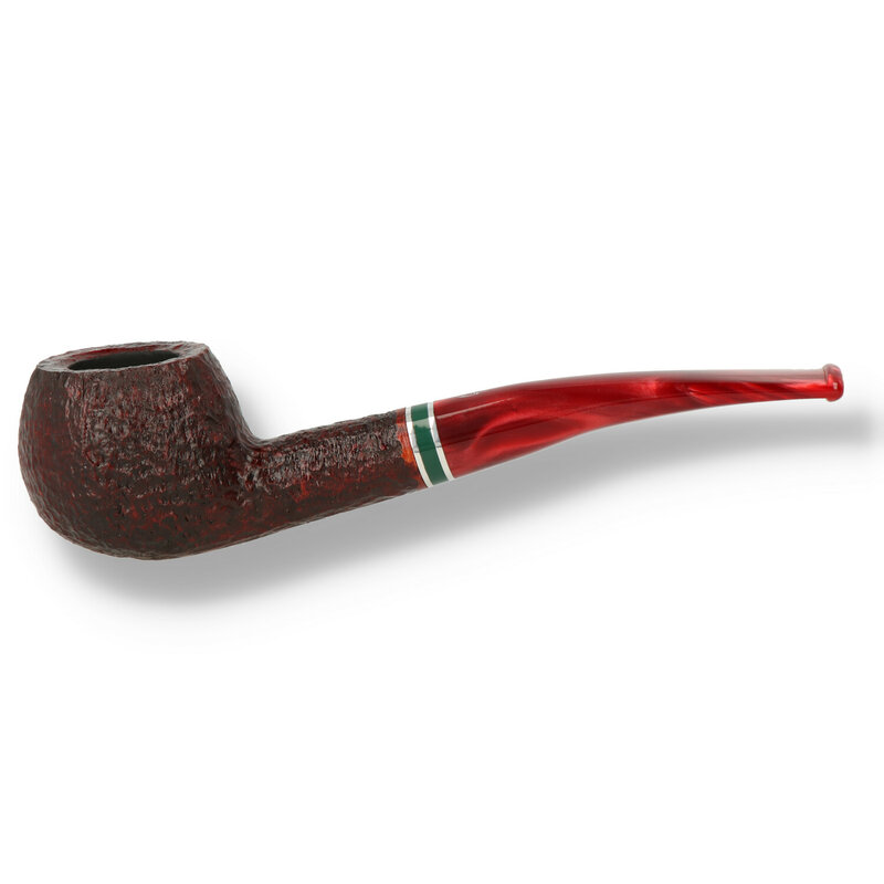 Savinelli St Nicholas Briar Pipes: The Savinelli St Nicholas combines an evocative festive styling with a classic dressy feel. Savinellis 2022 St Nicholas offering presents some of their most iconic shapes in an extra glossy, extra dark brown rusticated finishing. The beautifully glittery, pearlescent stem alternates light and dark red colouring reminiscent of a christmas bauble. This is then decorated with two silver rings that enclose a green acrylic band. This results in a beautiful Italian briar with a traditional aesthetic. The 315 is a generously constructed classic half-bent prince. The thick walls of the bowl give a nice tactile feel in the hand with the added benefit of giving a lovely dry cool smoke.