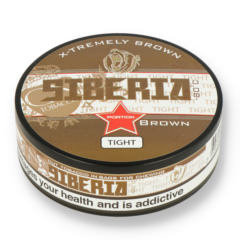 Siberia Brown Tight Portion A powerful chewing tobacco blend that provides a strong and very special spearmint experience. Extremely strong nicotine experience in an unmoistened chewing portion bag with lower moisture content. The drier moisture content ensures a prolonged flavour release. The tub contains a handy compartment in the top to discard of your used bags.
