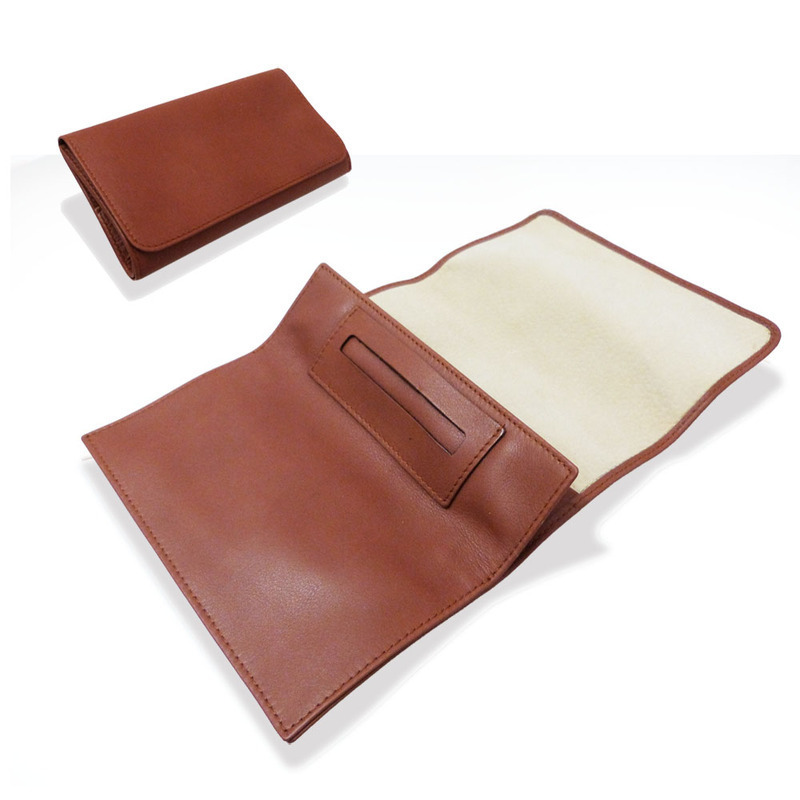 Roll up design The roll up design pouch is our favourite style of tobacco pouch! No zips or press studs to go wrong. Simply a large patch of leather with a smaller patch sewn on top and the deluxe Latex lining in between to form a compartment for your favourite tobacco. The internal layer of leather is finished with a thin layer of suede giving you that extra grip to roll. When opened up you get a large platform for preparing your tobacco or rolling a cigarette, then simply roll it up tight and the pouch will fit in your back pocket. As you roll the pouch all the air is expelled and the tobacco is packed tight meaning the roll up is the best design for keeping your tobacco fresher for longer. To finish off the pouch a handy, leather, paper dispenser is sewn inside and the pouch