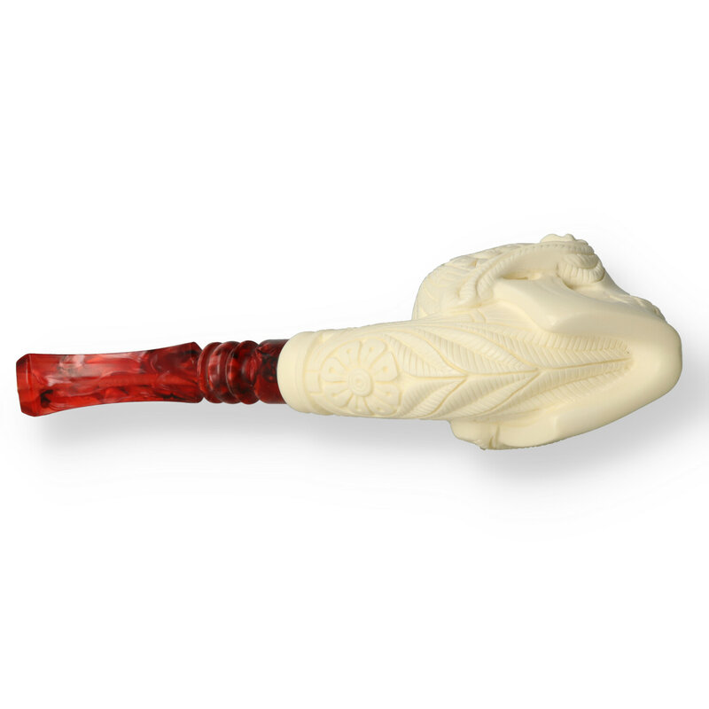 Breaking in Meerschaum Pipes: Meerschaum does not burn so your Meerschaum does not need breaking in or reaming. If you look after your Meerschaum you will be able to witness the pipe curing over years as the natural oils from the tobacco are absorbed into the clay revealing deep reds and golden browns. A well carved meerschaum will really show its true quality as deeper carvings will be enhanced by deeper shades where thicker parts of the pipe will stay more Golden.