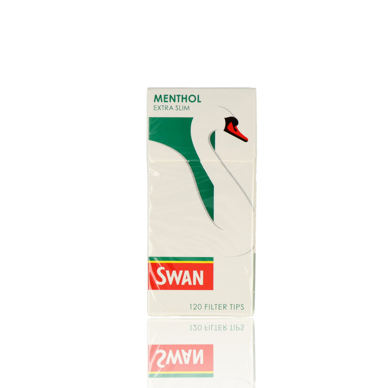 The Swan Extra Slim Mnethol Cigarette Filter Tips are a neat and convenient sized pack containing 120 super slim mentholated tips. Swan Extra Slim Filter tips are packed in strips of cellophane tubes for easy storing and protection of your tips.