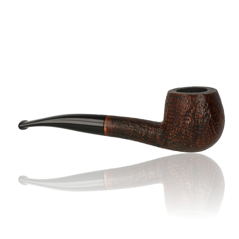 This half bent Apple is another stunning example of the high quality workmanship expected to come out of the Talamona studio. It's Apple bowl sits wonderfully in the hand and is finished with a beautiful sandblasted texture and 2 tone chestnut stain. These pipes are truly a work of art and it will be a real dilemma as to whether you will want to smoke it or put it on display for all to see.