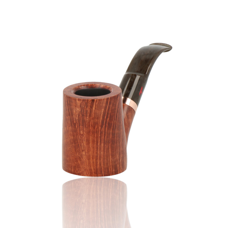 Talamona di Paolo Croci Testarossa Testarossa, Italian for Redhead is another stunning example of the high quality workmanship expected to come out of the Talamona studio. It's generous sized bowl has an incredible flame grain running upwards from the base of the bowl. The cumberland stem is made from Acrylic with a high polished copper band. These pipes are truly a work of art and it will be a real dilemma as to whether you will want to smoke it or put it on display for all to see.