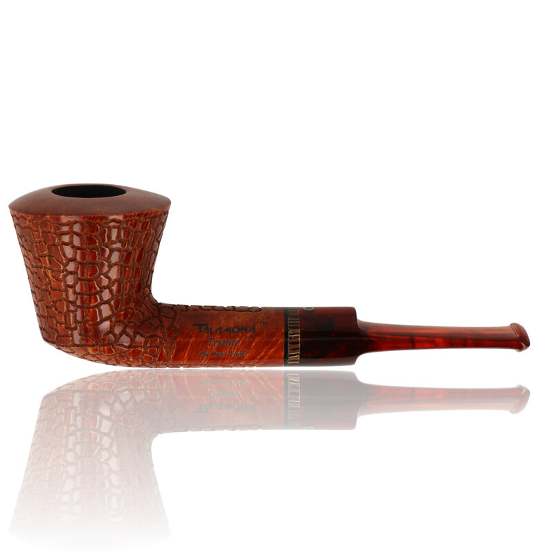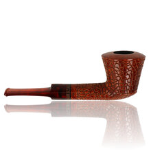 This Full bent Dublin is another stunning example of the high quality workmanship expected to come out of the Talamona studio. It's wide mouth Dublin bowl sits wonderfully in the hand and is finished with a deep grained textured rustication and 2 tone chestnut stain. These pipes are truly a work of art and it will be a real dilemma as to whether you will want to smoke it or put it on display for all to see.