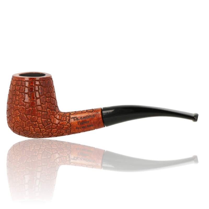 Talamona di Paolo Croci Texture This half bent billiard is another stunning example of the high quality workmanship expected to come out of the Talamona studio. It's petite bowl sits wonderfully in the hand and is finished with a deep grained textured rustication and 2 tone chestnut stain. These pipes are truly a work of art and it will be a real dilemma as to whether you will want to smoke it or put it on display for all to see.