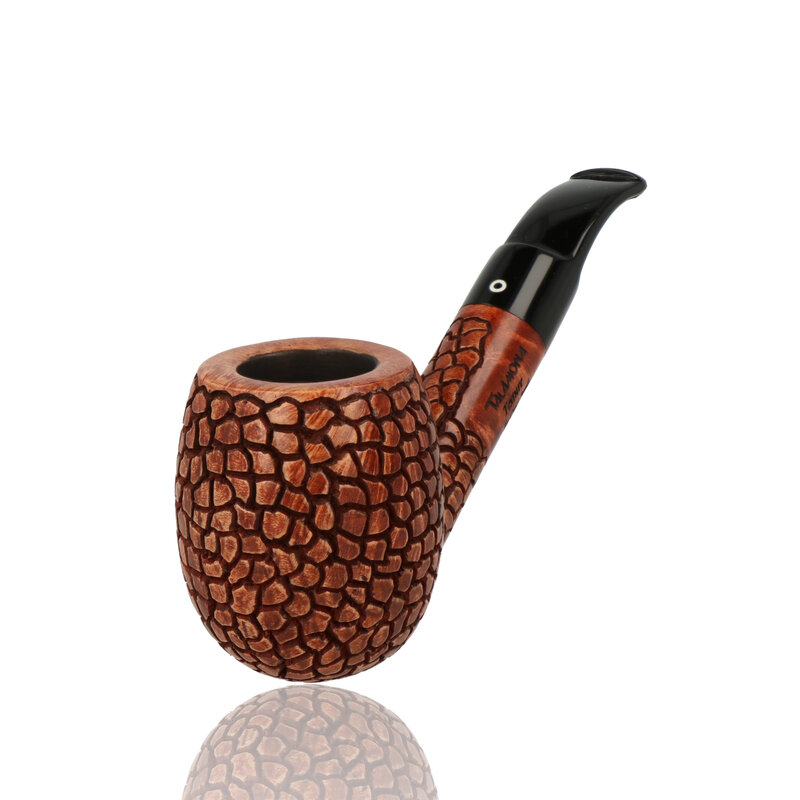 Talamona di Paolo Croci Texture This full bent billiard is another stunning example of the high quality workmanship expected to come out of the Talamona studio. It's generously proportioned bowl sits wonderfully in the hand and is finished with a deep grained textured rustication and 2 tone chestnut stain. These pipes are truly a work of art and it will be a real dilemma as to whether you will want to smoke it or put it on display for all to see.