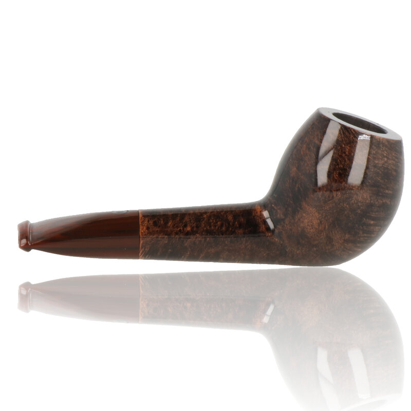 Talamona di Paolo Croci Toscano This Talamona Dragon is a Stubby Nosewarmer with a canted tulip bowl, These have been given a rich brown stain before being polished and waxed to bring out the beautiful grain on the aged briar. It is finished with a briar band and short tapered Cumberland stem.The small bore is perfect for a quick smoke, or to just keep your nose warm on the cold winter mornings.