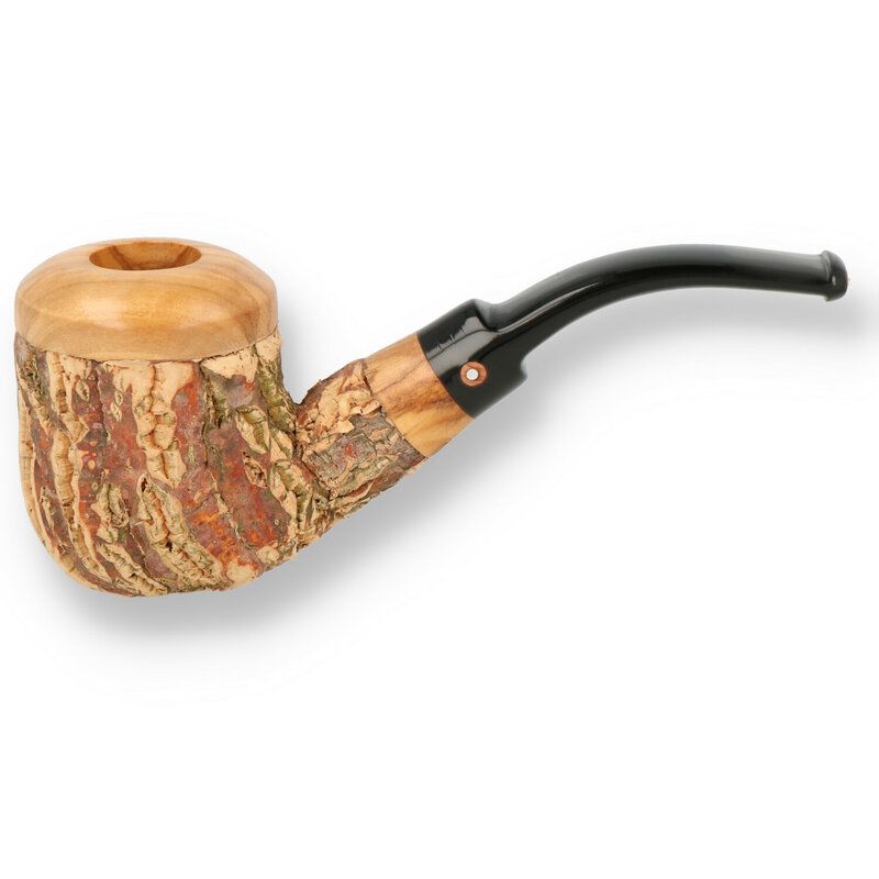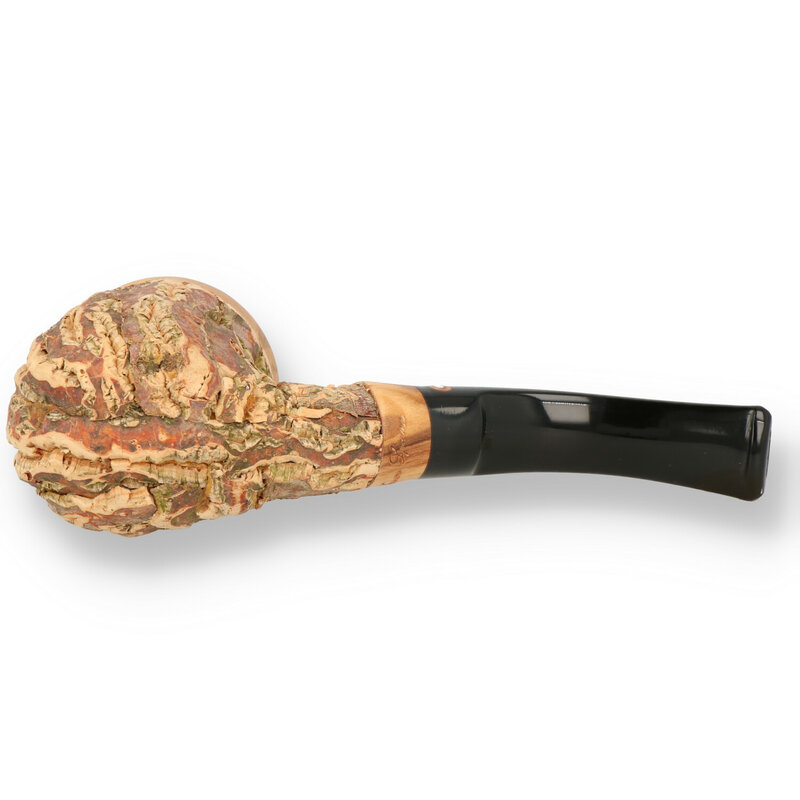 Tommaso Spanu Sughero Pipes: Tommaso Spanu are the only pipe manufacturer that produce these unique, striking and quite simply put outstanding pipes. The process is laborious and can only be done by hand but produces something really special that you will cherish for years. I'm sure we don't need to tell you how striking these pipes are and even more so in the flesh. A high grade block of Spanu home grown Briar is shaped and clad with natural Oak Cork before being fitted with a wonderful marbled mouthpiece which compliments the pipe beautifully. This pipe has left the Briar exposed on the rim and the shank for a contrasting effect against the cork. The cork is a robust coating, which is very comfortable to hold but also aids in cooling the pipe.