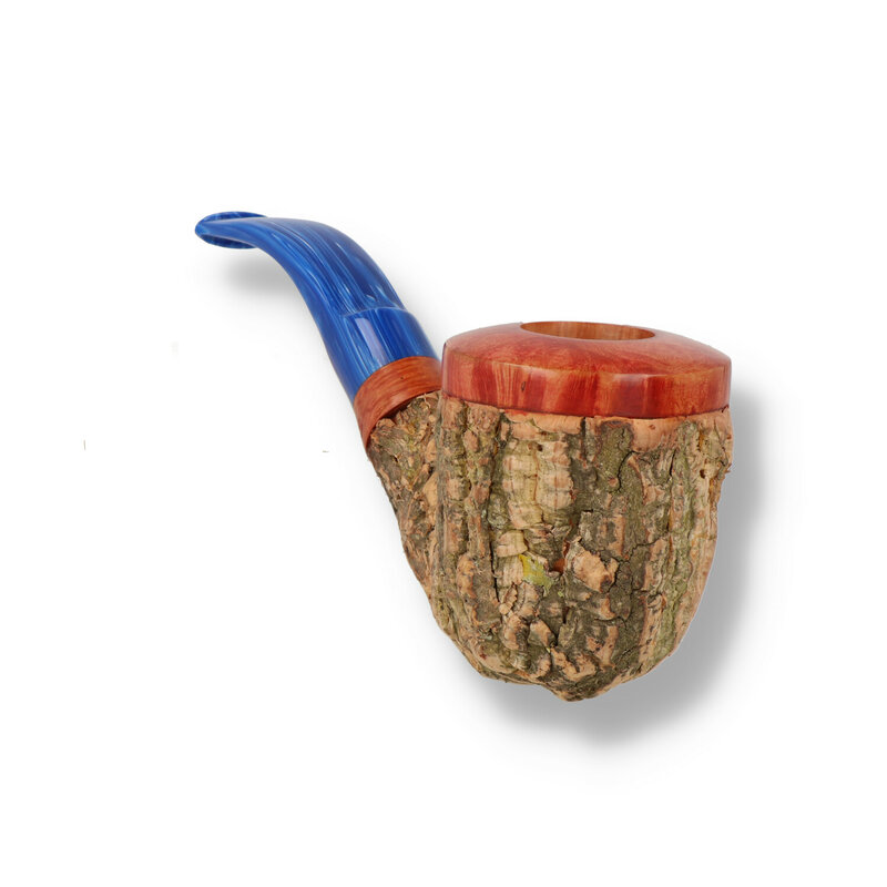 Tommaso Spanu Sughero Pipes: Tommaso Spanu are the only pipe manufacturer that produce these unique, striking and quite simply put outstanding pipes. The process is laborious and can only be done by hand but produces something really special that you will cherish for years. I'm sure we don't need to tell you how striking these pipes are and even more so in the flesh. A high grade block of Spanu home grown Briar is shaped and clad with natural Oak Cork before being fitted with a wonderful marbled mouthpiece which compliments the pipe beautifully. This pipe has left the Briar exposed on the rim and the shank for a contrasting effect against the cork. The cork is a robust coating, which is very comfortable to hold but also aids in cooling the pipe.