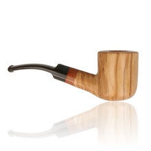 The Tommaso Spanu Olivastro Classico is a hand-crafted pipe made from solid Sardinian olivewood. Each piece is shaped, cured, and finished entirely in the Spanu workshop near Sassari, where the maker oversees every stage of production. The natural olive grain displays warm honey and amber tones, paired with a contrasting briar collar and hand-cut ebonite stem. Light in the hand yet sturdy, it offers a clean open draw and a distinctive Mediterranean aesthetic. Every Spanu pipe is unique, showcasing the texture and life of the wood it came from.