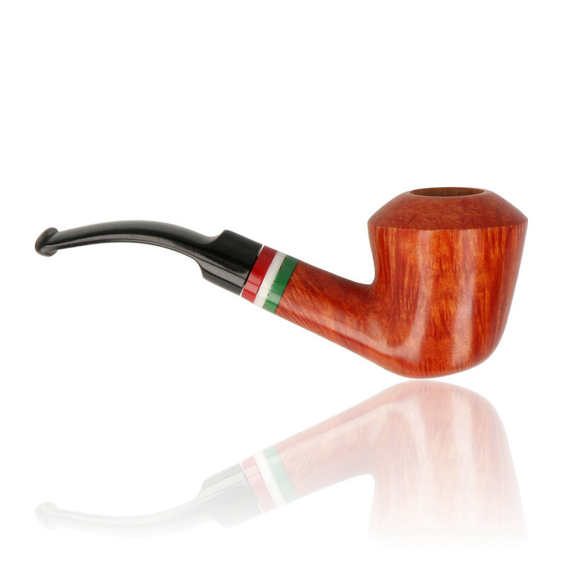 The Tommaso Spanu Briar “F” Trio is handmade in Sardinia from high-grade briar and finished with a natural polish that brings out the rich grain of the wood. The shank features the Italian tricolour inlay, symbolising the maker’s national heritage and dedication to craft. Fitted with a black acrylic stem, the pipe has a balanced draw and a comfortable feel in the hand. Each piece is individually made in the Spanu workshop, where every stage — from shaping the briar to final finishing — is completed by hand.