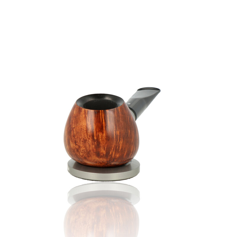 Vauen Tube The Vauen Tube is a very modern standing pipe with a hand flattering design. The pipe has a very interesting feature in that it has a small metal piece embedded in the base of the bowl and comes with a magnetic stand to sit it down between puffs. The stunning ring grain is perfectly accented with a stainless steel shank which not only gives it an eye-catching aesthetic but also helps to keep the smoke cool.