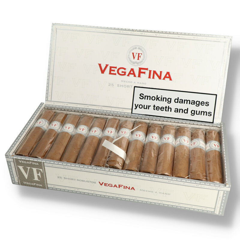 Vegafina Short Robusto These cigars are a must try for every cigar enthusiast. Hand crafted in the Dominican Republic with an Ecuadorian Connecticut seed wrapper, a rich tasting Nicaraguan binder and Columbian filler tobaccos. This medium well balanced cigar offers up earthy peppery wood and coffee with a slight almond nuttiness.