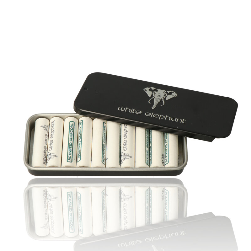 White Elephant Activated Charcoal 9mm Pipe Filters (Tin of 10 Filters)