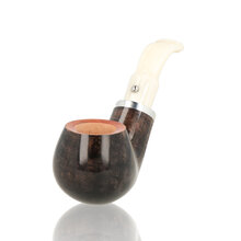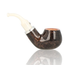 Ebony And Ivory Grey The Ebony and Ivory pipes are a short stem pipe perfect for chucking in a pocket when you are out and about. The quality of these is highly regarded, with luscious high gloss lacquers and tightly fitting fixtures. The Bowls have been given a light walnut stain before lacquering and are finished with a nickel band and white ivory look stems. German freehand artist Reiner Thilo has given his permission to resurrect his original design of the inlaid metal sphere on the stem which looks fantastic and really adds to the tactile feel of the pipes. The Number 1 is a classic full bent billiard with a tapered stem.