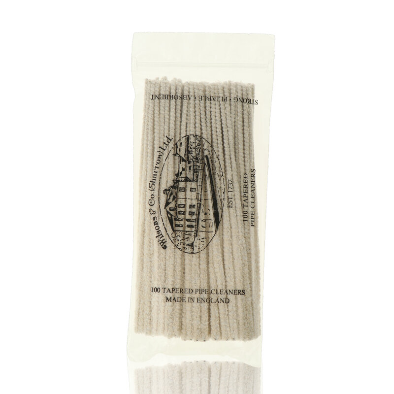 High-Quality Unbleached cotton pipe cleaners by Wilsons of Sharrow. Thin on one end, thick at the other. The idea is to thread the thin end through and pull the thicker end for ultimate cleaning.