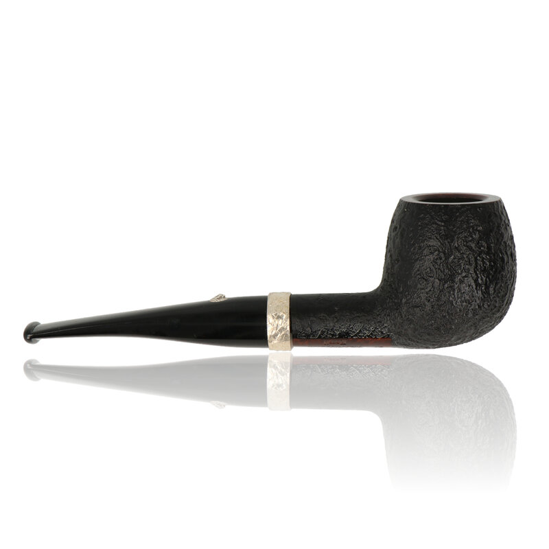 The textured surface offers a comfortable grip, while the metal band adds a refined contrast to the darker briar. Compatible with 9mm filters, it delivers a smooth, balanced and easy smoking experience.