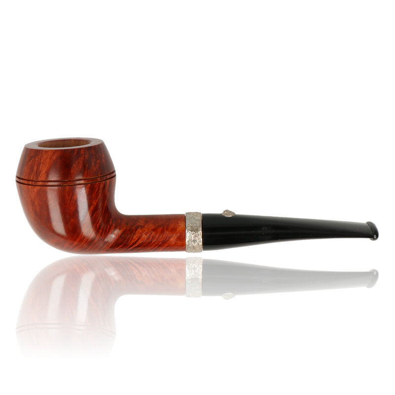 The Barling Trafalgar Ye Olde Wood 1817 is a Rhodesian briar pipe made from aged briar, featuring a rounded bowl with twin beadlines, polished finish and decorative band.