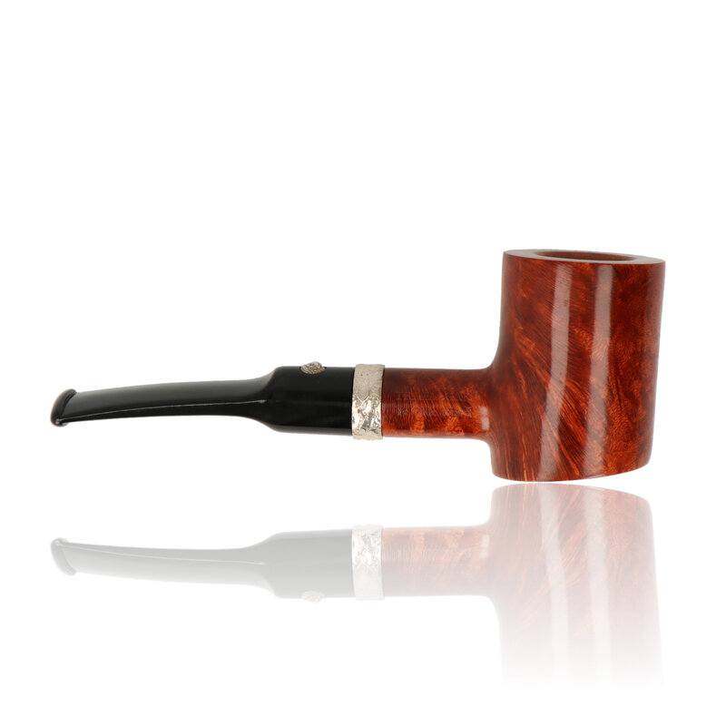 The Barling Trafalgar Ye Olde Wood 1820 is a poker-shaped briar pipe made from aged briar, featuring a cylindrical bowl, flat base, polished finish and decorative metal band.