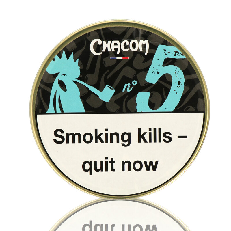 Chacom No.5 Pipe Tobacco: The Chacom No.5 is a fairly strong English blend comprising of Dark Virginia with a generous portion of Latakia that has been balanced out with some Black Cavendish and Perique. This results in a wonderfully rich but balanced tobacco.