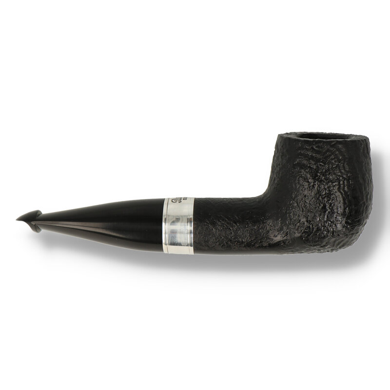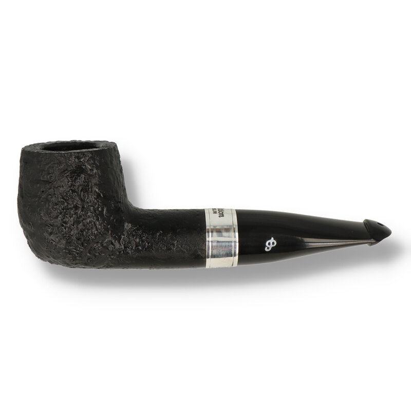 Crafted from quality briar and finished in a crisp sandblast, the pipe displays a varied surface texture with both fine and broader grain patterns. The tactile finish enhances grip while maintaining a refined, understated appearance.